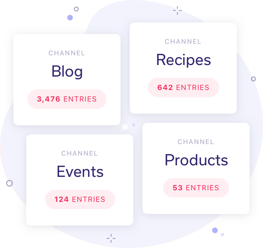 In ExpressionEngine, your site content is stored in channels—flexible data containers with fields for any type of information. Create channels for blogs, news, team bios, product or service descriptions, document downloads, you name it! Once your information is in a channel, it can be served anywhere on your site.