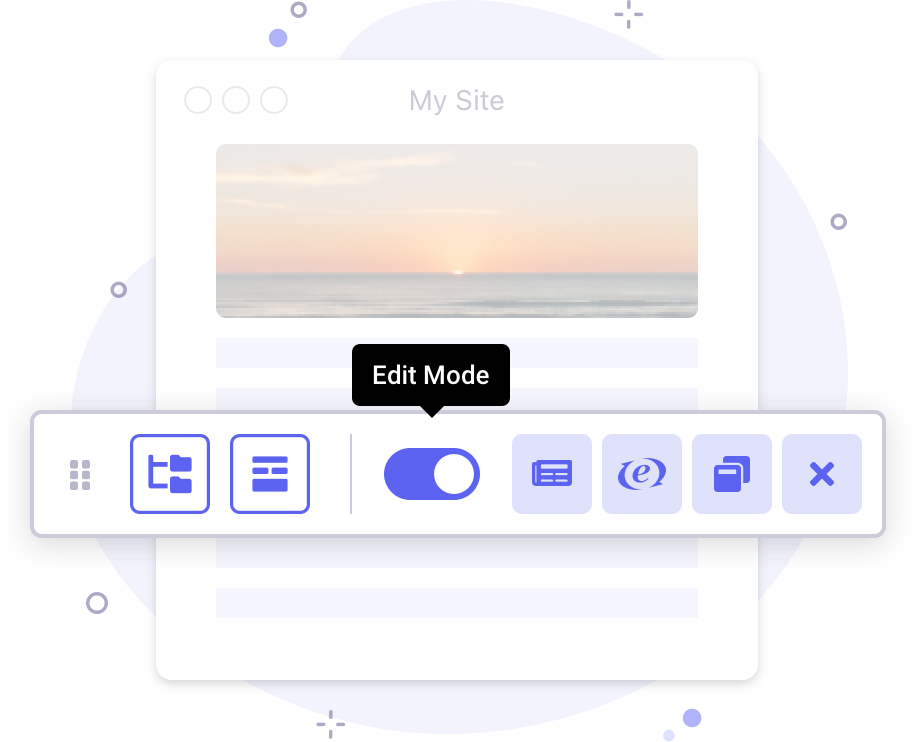 The Dock in ExpressionEngine is your front-end command center. It lets you jump into Edit mode to access all of your site's content, as well as other features to fine tune your site's functionality.