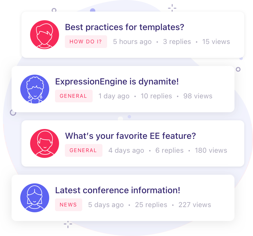 ExpressionEngine comes with a full-featured discussion forum module so you can keep the conversation going!